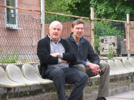 Axel und Lars Pape beim Dreh von “WARUM HALB VIER?”, Arena auf Schalke